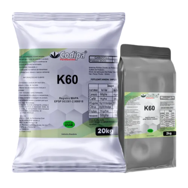 - Garantia: Potássio (K2O) solúvel em água: 60%